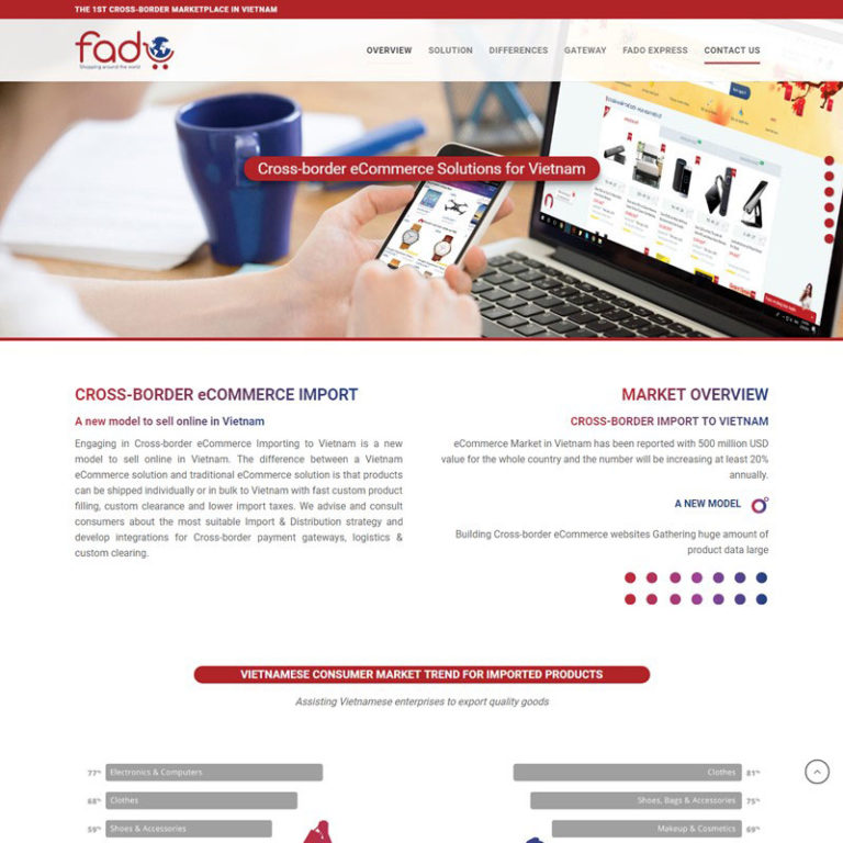FADO EXPRESS Dịch vụ vận chuyển hàng hóa xuyên biên giới. Landing page, Trang web được thiết kế nhằm giới thiệu dịch vụ, tham khảo…